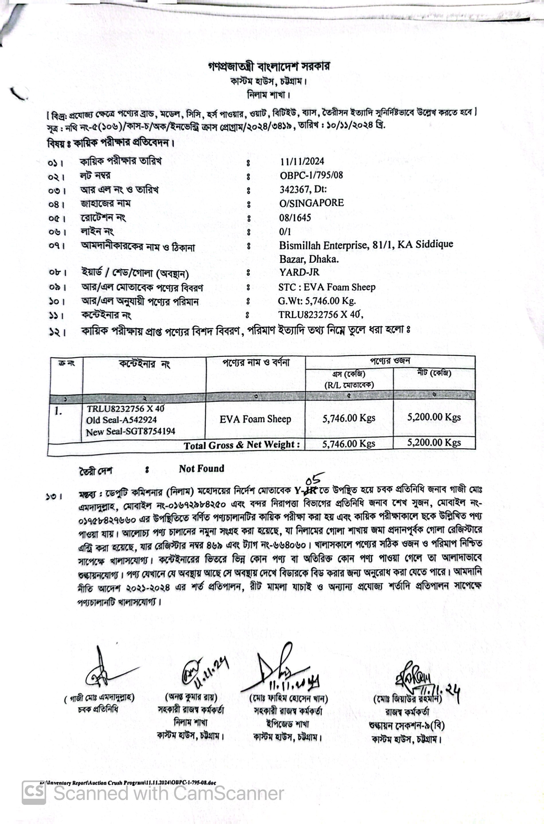 লটের শিরোনাম :EVA Foam Sheet(Previous Bid: 0 TK)
