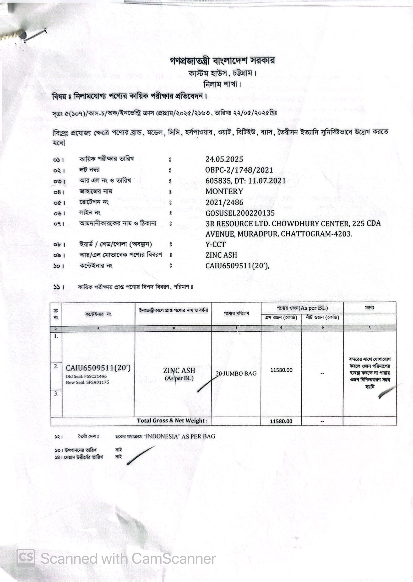 লটের শিরোনাম :Zinc Ash(Previous Bid: 0 TK)