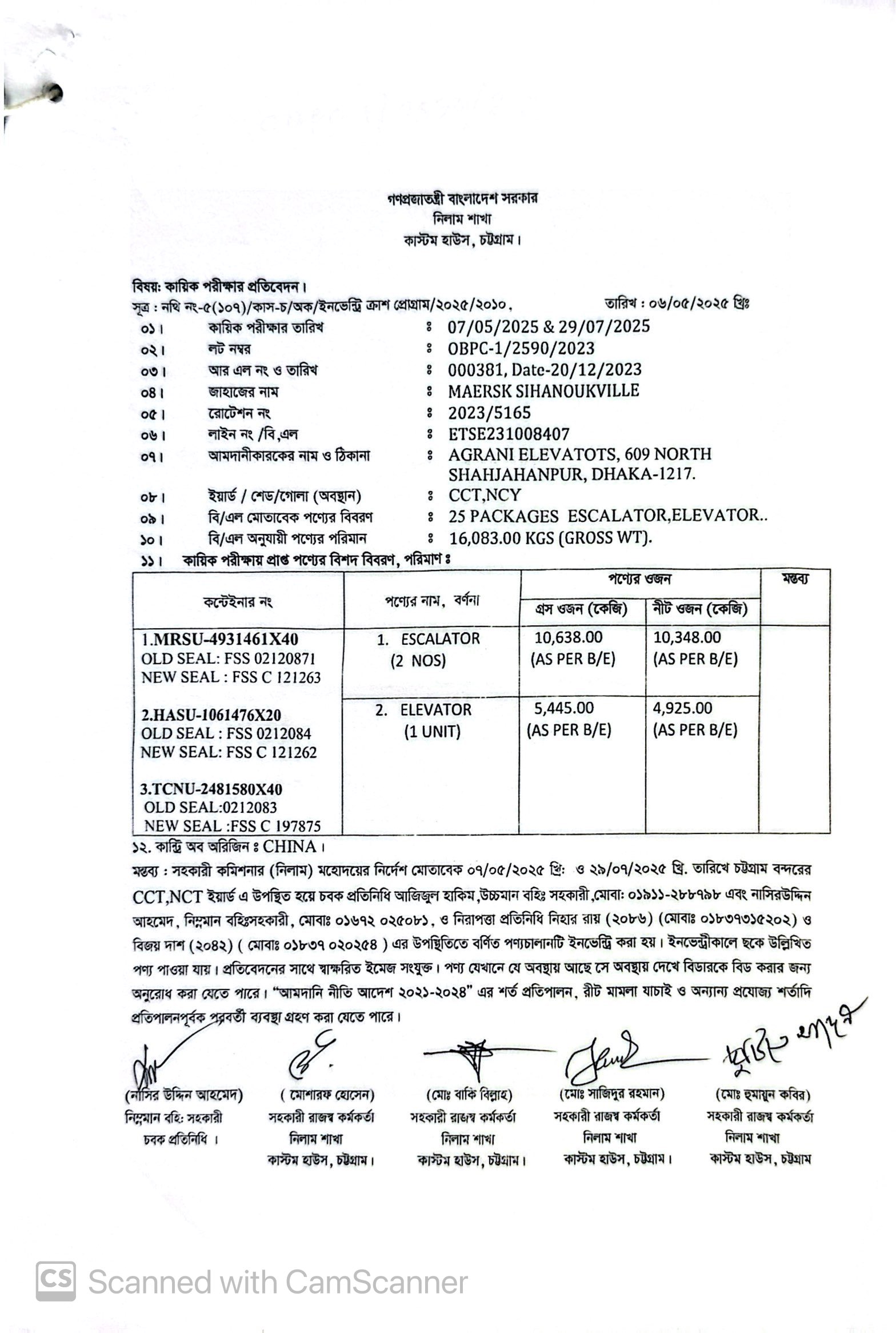 লটের শিরোনাম :(1) Escalator (2 Nos) 10348 Kgs, (2) Elevator (1 Unit) 4925 Kgs(Previous Bid: 0 TK)
