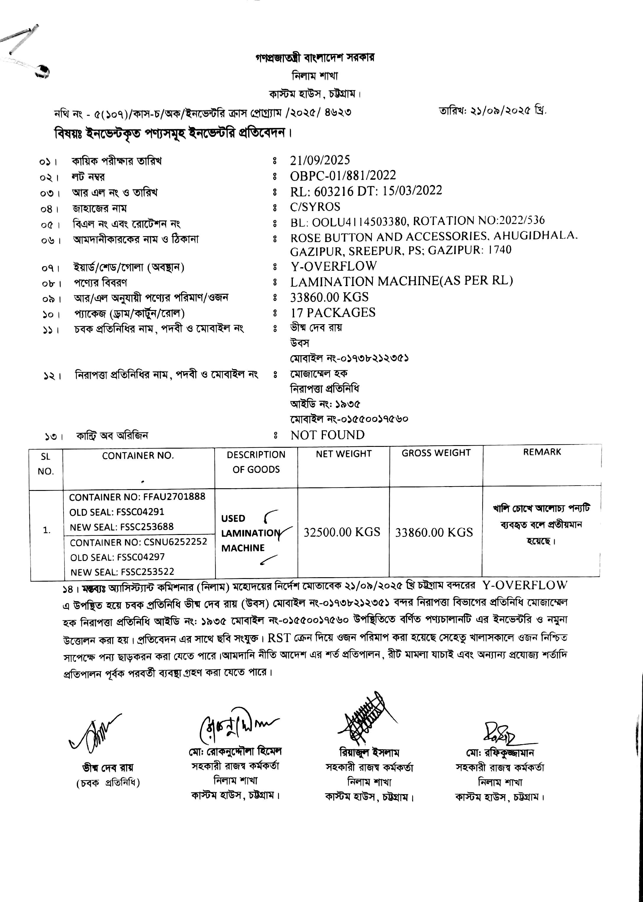 লট নং OBPC-১/৮৮১/২০২২/২০২৫/৩০১