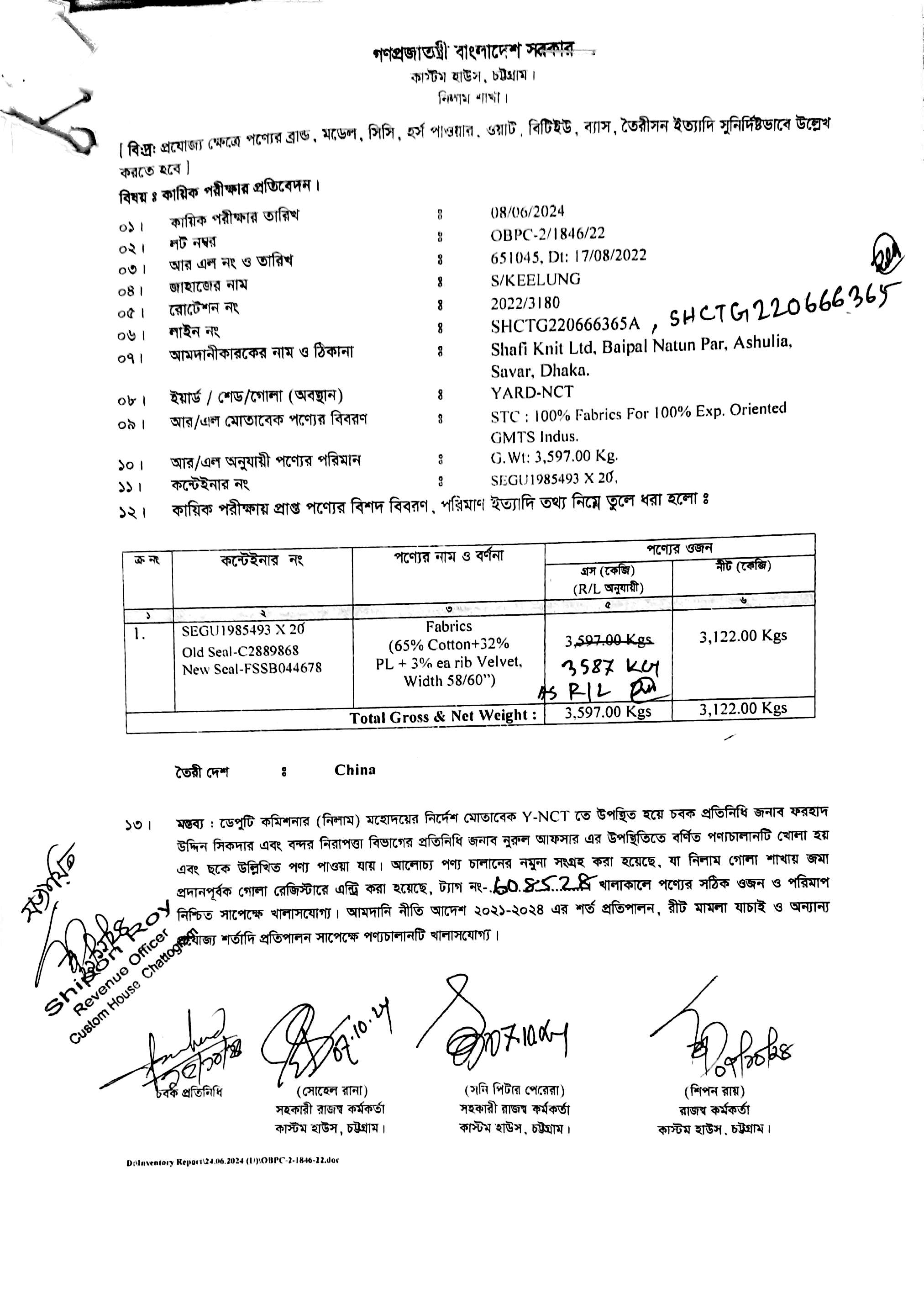 | কন্টেনার/জি আর নং |