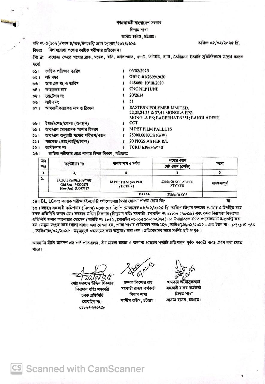 লটের শিরোনাম :MPET Film (As per sticker)(Previous Bid: 0 TK)