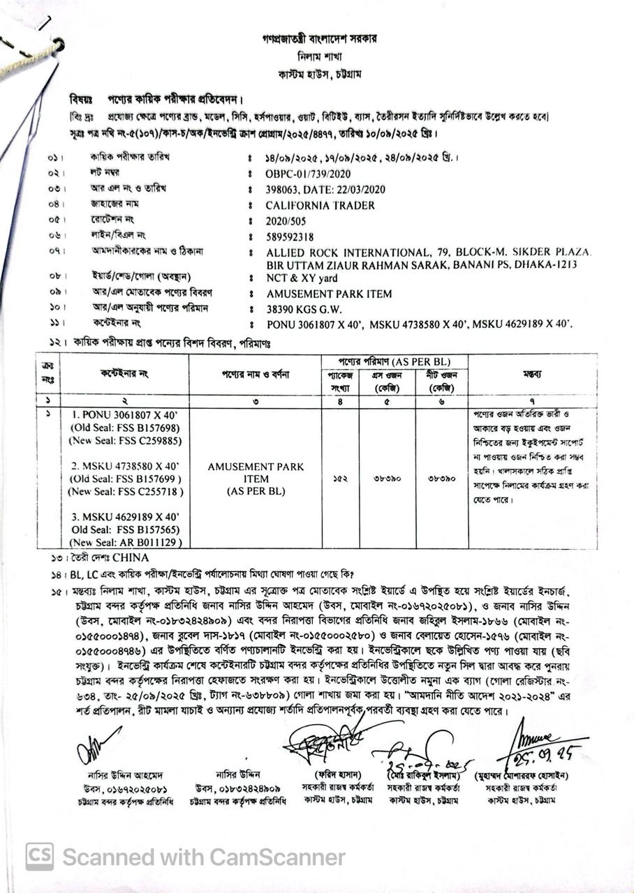 লটের শিরোনাম :Amusement Park Item (As per BL)(Previous Bid: 0 TK)