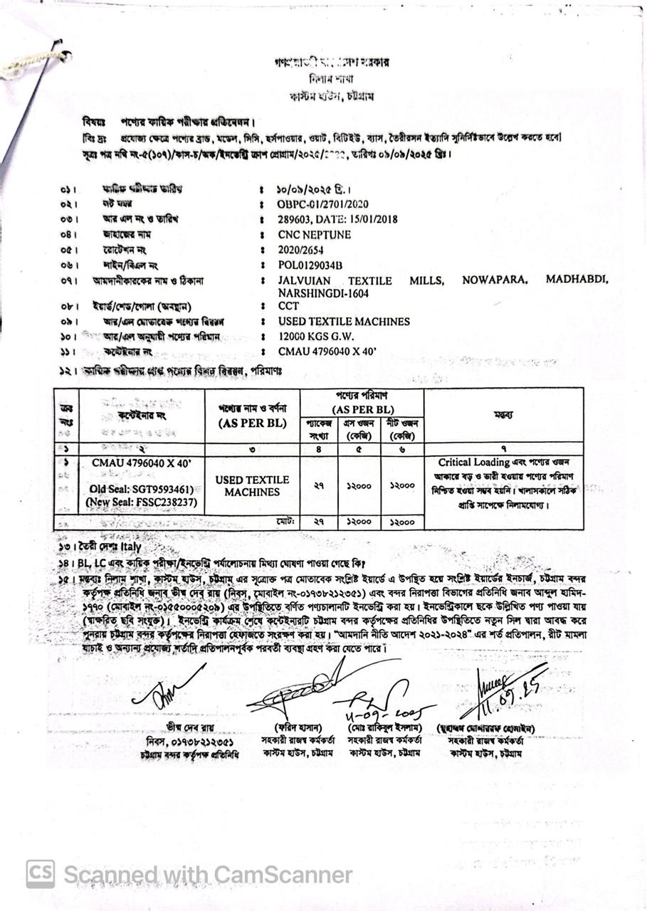 লটের শিরোনাম :Used Textile Machines (As per BL)(Previous Bid: 0 TK)