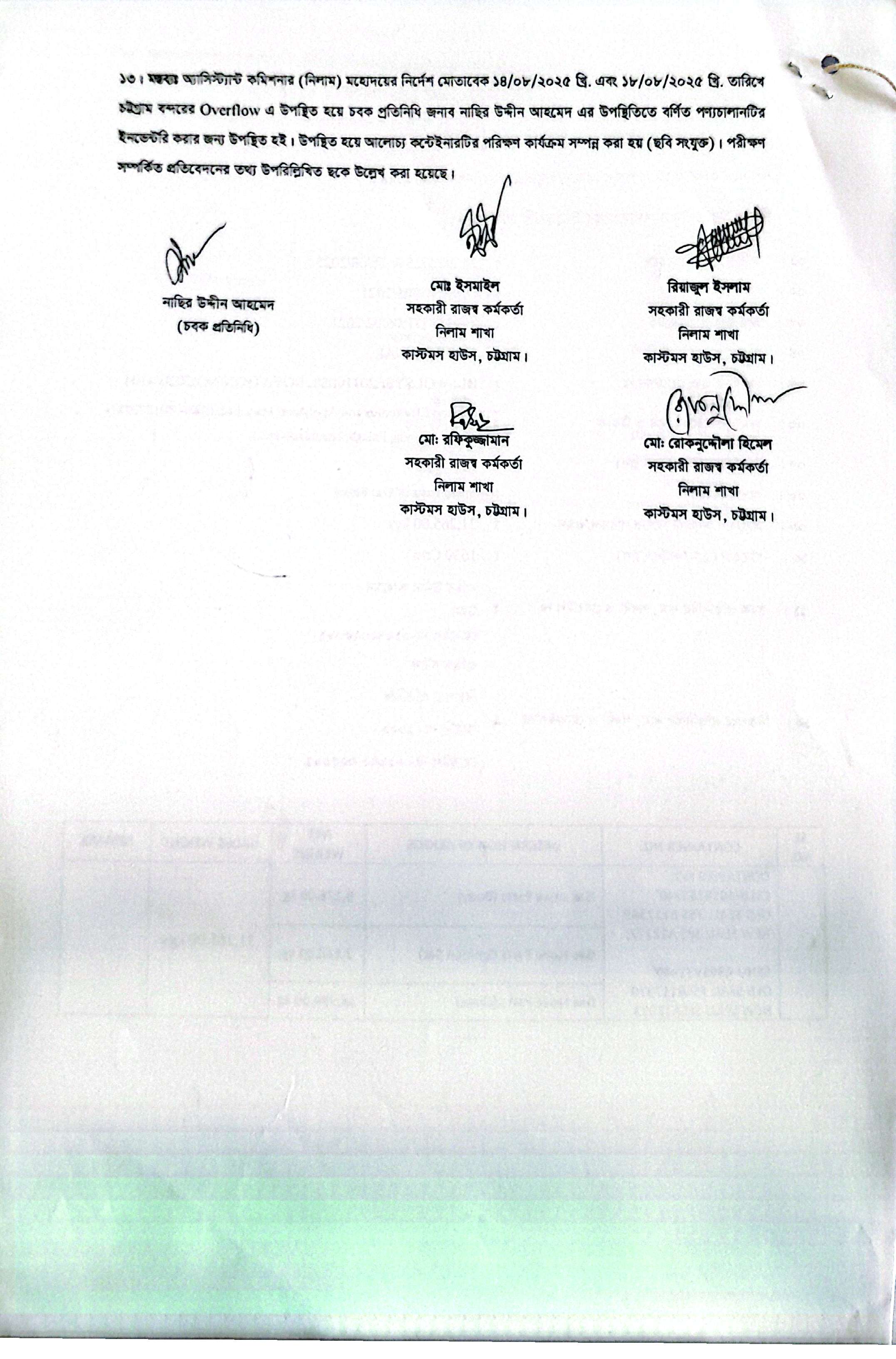 Terms & condition : আমদানি নীতি আদেশ এবং বিদ্যমান অন্যান্য আইন ও বিধি-বিধানের প্রযোজ্য সকল শর্ত পরিপালন এবং প্রযোজ্য ক্ষেত্রে রাসায়নিক পরীক্ষায় পণ্যের সঠিকতা ও ব্যবহার উপযোগিতা থাকা সাপেক্ষে খালাসকালে পণ্যের বর্ণনা এবং ওজন নিশ্চিত করে পণ্য ছাড়যোগ্য হবে। কোন লটভুক্ত পণ্যচালানে মেয়াদ উত্তীর্ণ/ধ্বসংযোগ্য পণ্য অন্তর্ভুক্ত থাকলে, উক্ত পণ্যচালানের ক্ষেত্রে মেয়াদ উত্তীর্ণ/ধ্বসংযোগ্য পণ্য ব্যতীত (প্রযোজ্য ক্ষেত্রে) কেবল মেয়াদযুক্ত/নিলামযোগ্য পণ্যসমূহ বিদ্যমান ও প্রযোজ্য আইন ও বিধি-বিধানের প্রযোজ্য সকল শর্ত পরিপালন সাপেক্ষে পণ্য ছাড়যোগ্য হবে। সার্ভার জটিলতা এড়ানোর জন্য আগ্রহী নিলাম ক্রেতাগণকে সরেজমিন পণ্য দেখে নিলামের নির্ধারিত শেষ তারিখ ও সময়ের (২৪/১২/২০২৫ খ্রি. তারিখ দুপুর ০২.০০ টা) পূর্বেই বিশেষ ই-নিলামে অংশগ্রহণ করার জন্য অনুরোধ করা যাচ্ছে। কোনরূপ কারণ দর্শানো ব্যতিরেকে কর্তৃপক্ষ যে কোন সময় ও পর্যায়ে যে কোন লট বা সকল লটের নিলাম আংশিক বা সম্পূর্ণ স্থগিত বা বাতিলের অধিকার সংরক্ষণ করেন।