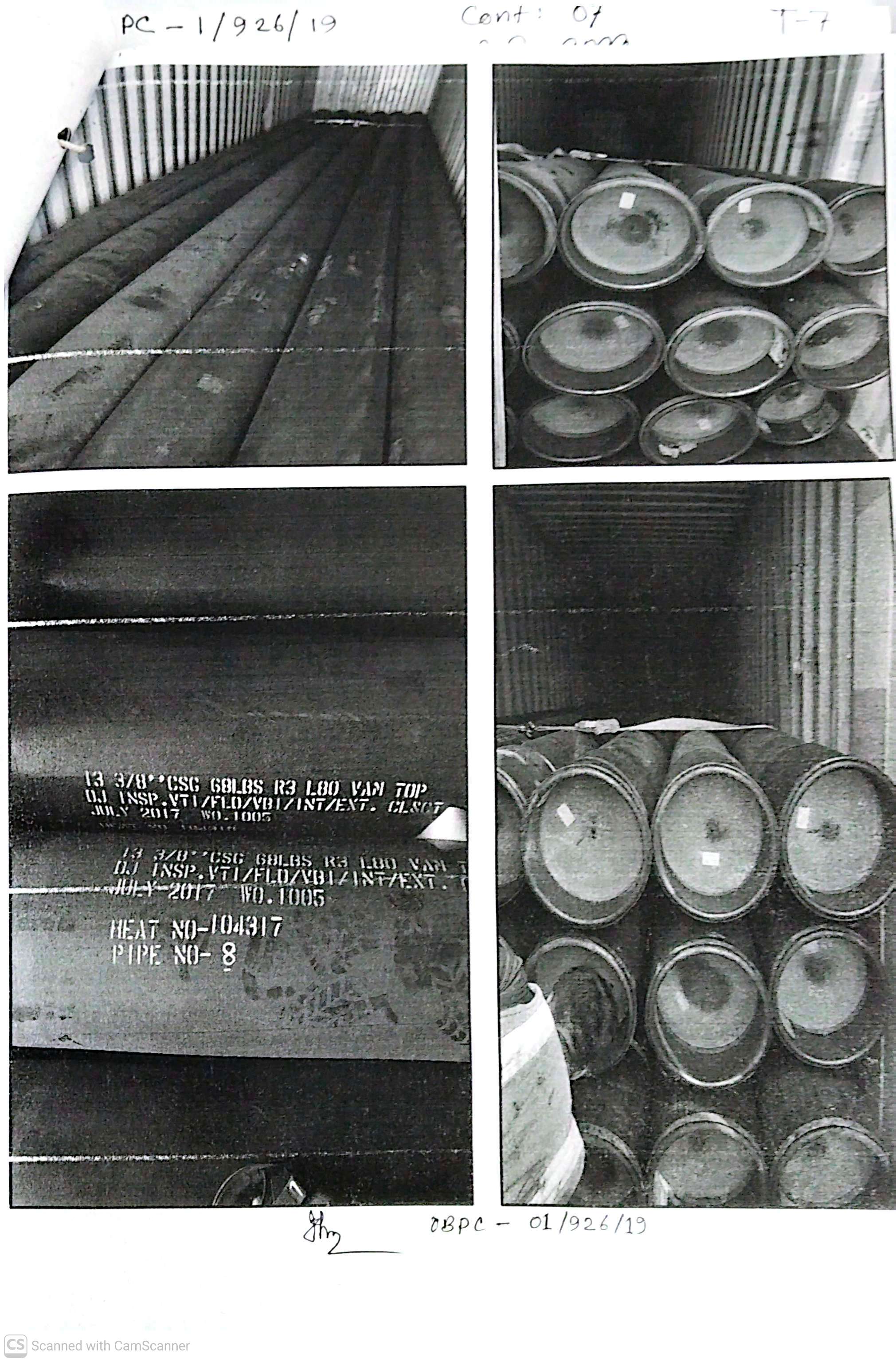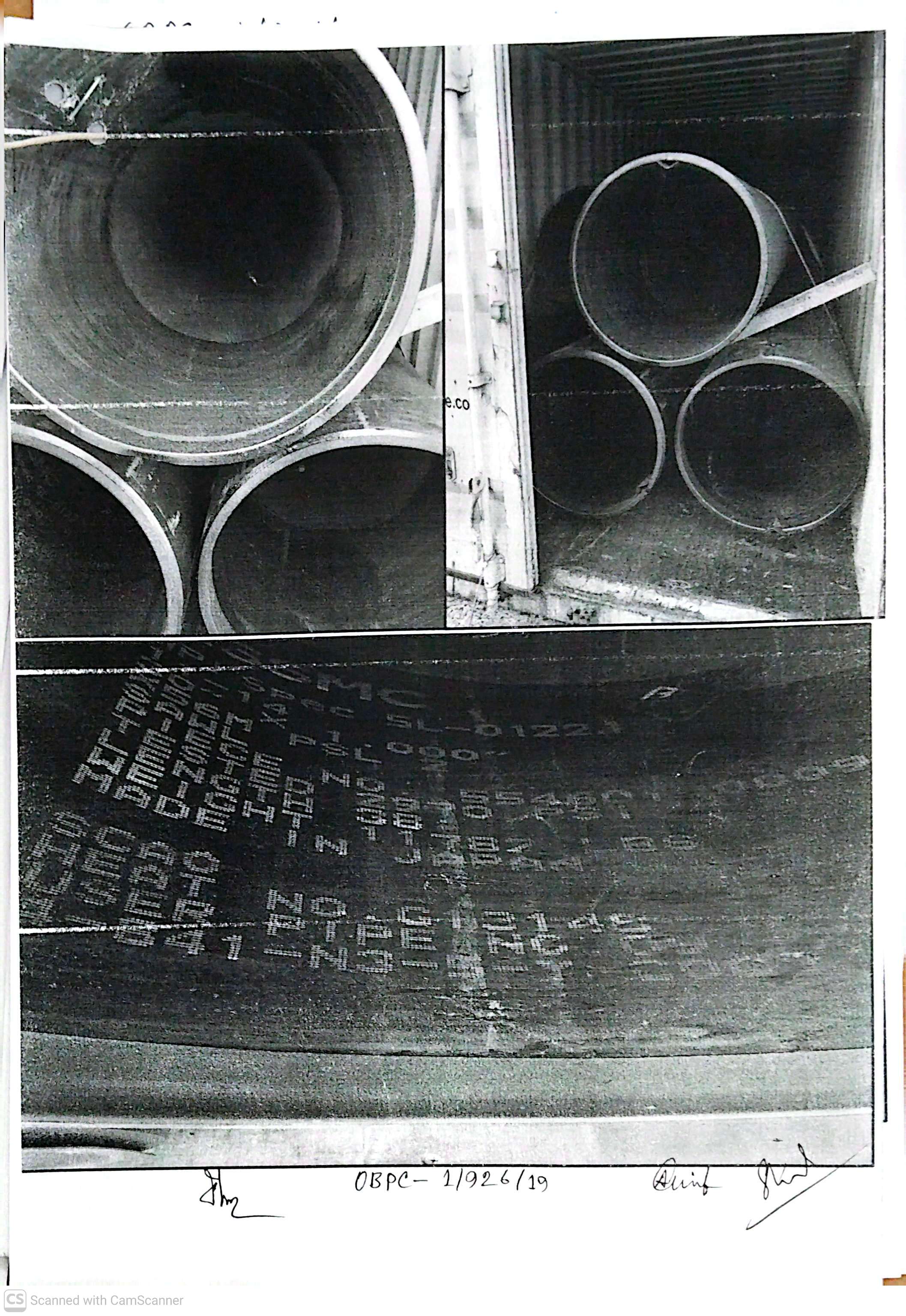(1) Cylindrical Iron Pipe Diameter: 30 Inch 24,129 Kgs; (2) Cylindrical Iron Pipe Diameter: 13.37 Inch 1,38,065 Kgs |