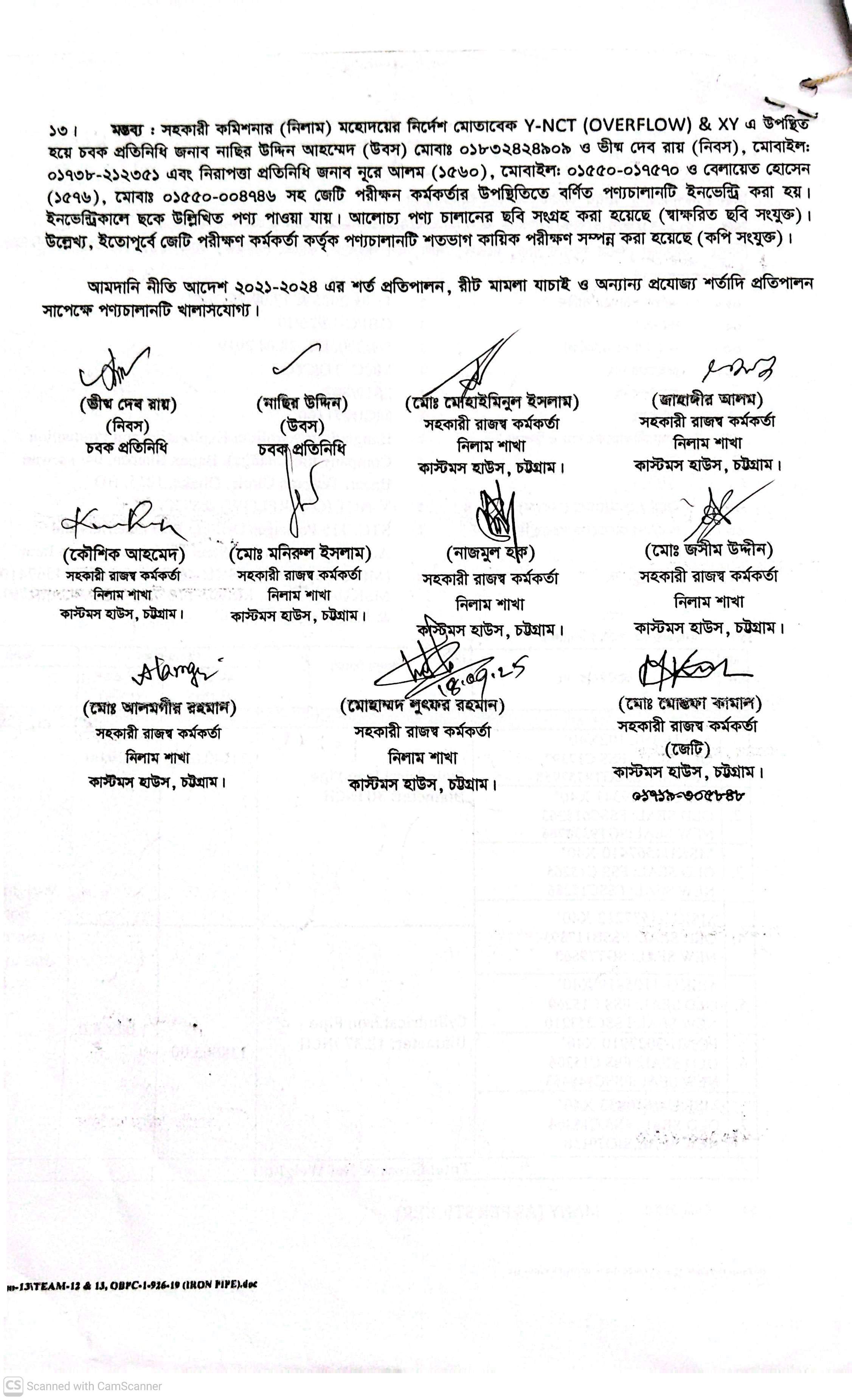 Terms & condition : আমদানি নীতি আদেশ এবং বিদ্যমান অন্যান্য আইন ও বিধি-বিধানের প্রযোজ্য সকল শর্ত পরিপালন এবং প্রযোজ্য ক্ষেত্রে রাসায়নিক পরীক্ষায় পণ্যের সঠিকতা ও ব্যবহার উপযোগিতা থাকা সাপেক্ষে খালাসকালে পণ্যের বর্ণনা এবং ওজন নিশ্চিত করে পণ্য ছাড়যোগ্য হবে। কোন লটভুক্ত পণ্যচালানে মেয়াদ উত্তীর্ণ/ধ্বসংযোগ্য পণ্য অন্তর্ভুক্ত থাকলে, উক্ত পণ্যচালানের ক্ষেত্রে মেয়াদ উত্তীর্ণ/ধ্বসংযোগ্য পণ্য ব্যতীত (প্রযোজ্য ক্ষেত্রে) কেবল মেয়াদযুক্ত/নিলামযোগ্য পণ্যসমূহ বিদ্যমান ও প্রযোজ্য আইন ও বিধি-বিধানের প্রযোজ্য সকল শর্ত পরিপালন সাপেক্ষে পণ্য ছাড়যোগ্য হবে। সার্ভার জটিলতা এড়ানোর জন্য আগ্রহী নিলাম ক্রেতাগণকে সরেজমিন পণ্য দেখে নিলামের নির্ধারিত শেষ তারিখ ও সময়ের (২৪/১২/২০২৫ খ্রি. তারিখ দুপুর ০২.০০ টা) পূর্বেই বিশেষ ই-নিলামে অংশগ্রহণ করার জন্য অনুরোধ করা যাচ্ছে। কোনরূপ কারণ দর্শানো ব্যতিরেকে কর্তৃপক্ষ যে কোন সময় ও পর্যায়ে যে কোন লট বা সকল লটের নিলাম আংশিক বা সম্পূর্ণ স্থগিত বা বাতিলের অধিকার সংরক্ষণ করেন।
