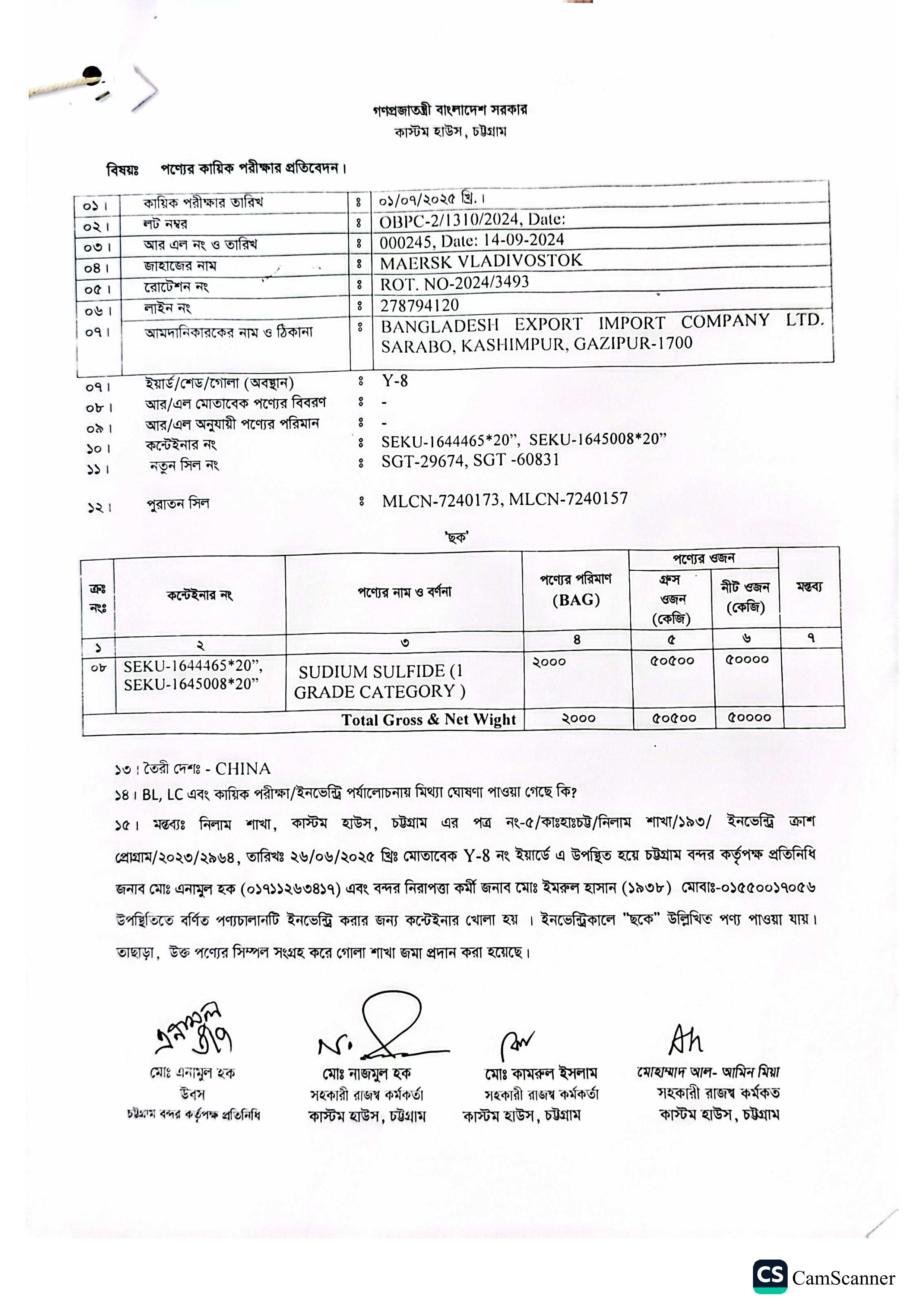 লটের শিরোনাম :Sodium Sulfide (Should be released if found proper in chemical examination)(Previous Bid: 0 TK)