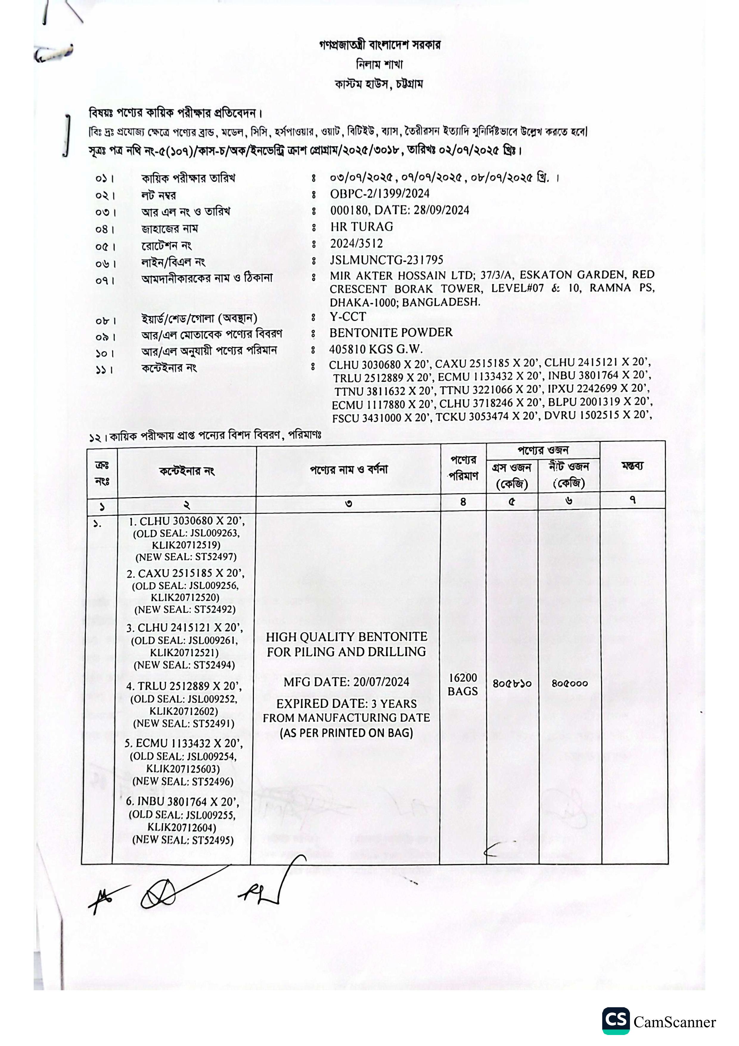 লটের শিরোনাম :Hight Quality Benthonic For Piling & Drilling(Previous Bid: 0 TK)