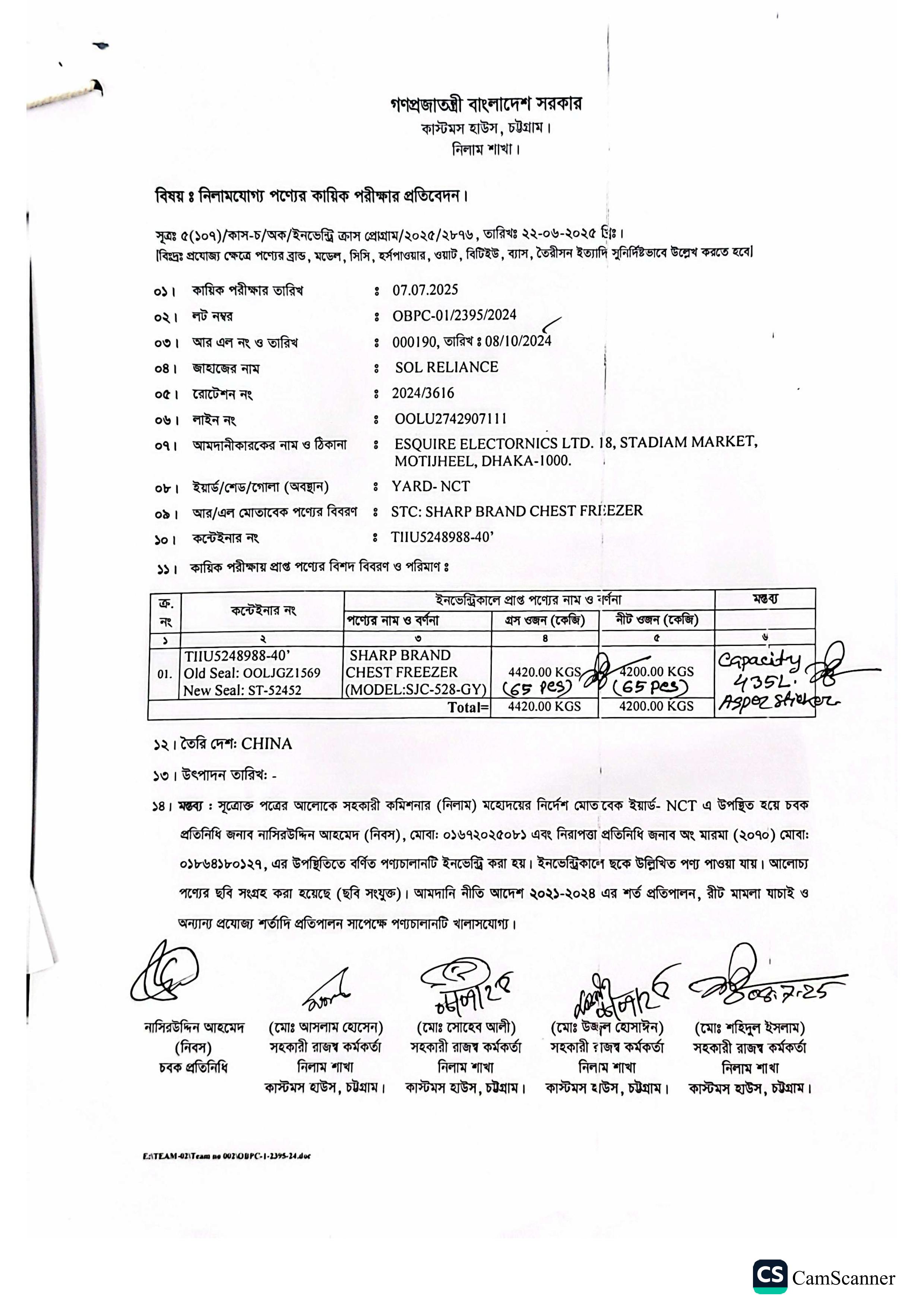 লটের শিরোনাম :Sharp Brand Chest Freezer (Model:SJC-528-GY) 65 PCS, (28,275.00 LTR)(Previous Bid: 0 TK)