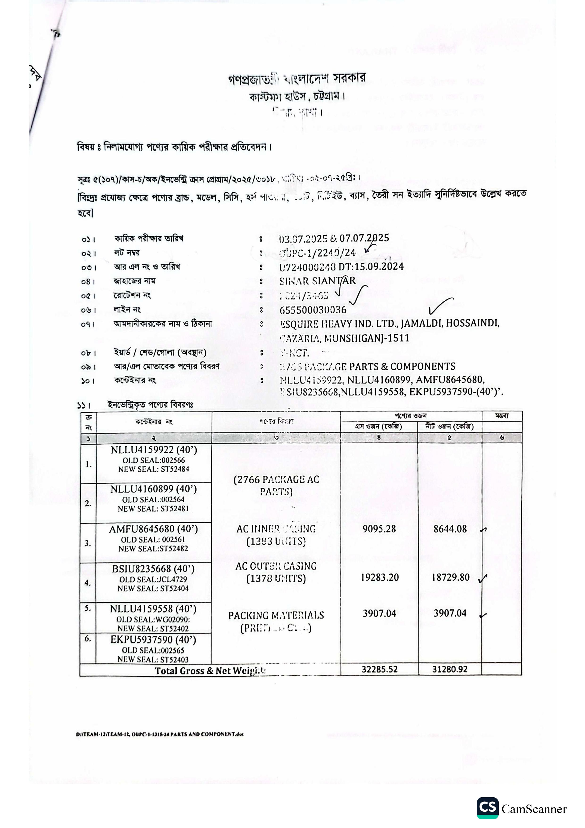 লটের শিরোনাম :Ac Inner Casing - 8644.08 KG, Ac Outer Casing - 18729.8 KG, Packing Materials - 3907.04 KG(Previous Bid: 0 TK)