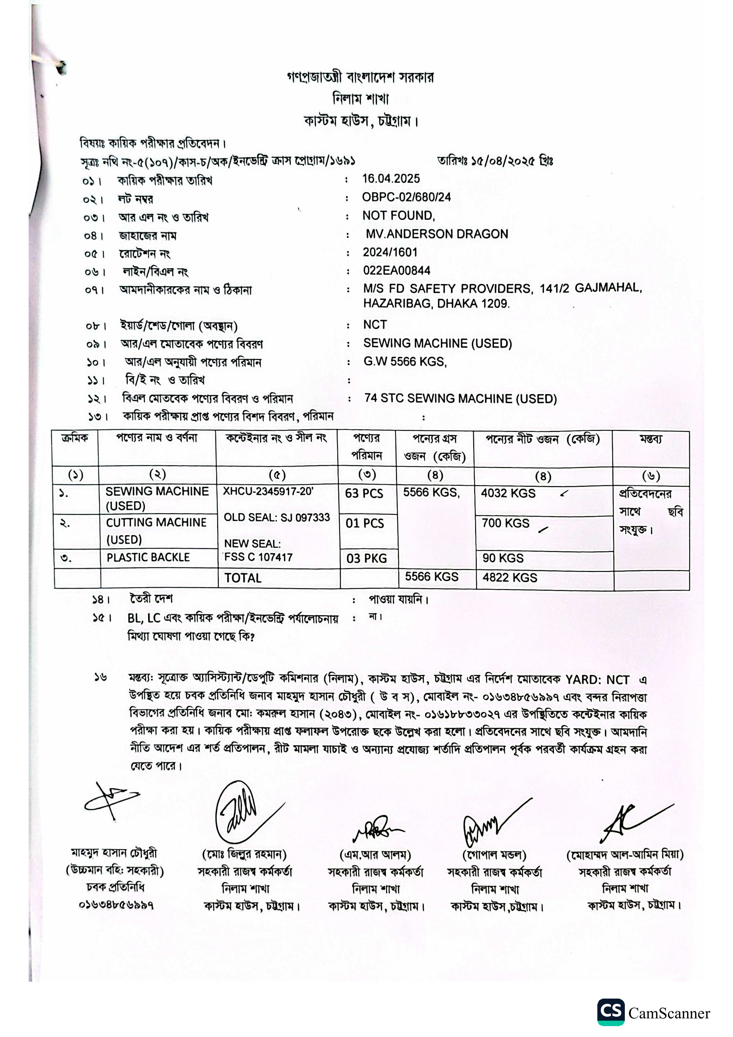 লটের শিরোনাম :Sewing Machine (Used) - 4032 KG, Cutting Machine (Used) - 700 KG, Plastic Backle - 90 KG(Previous Bid: 0 TK)