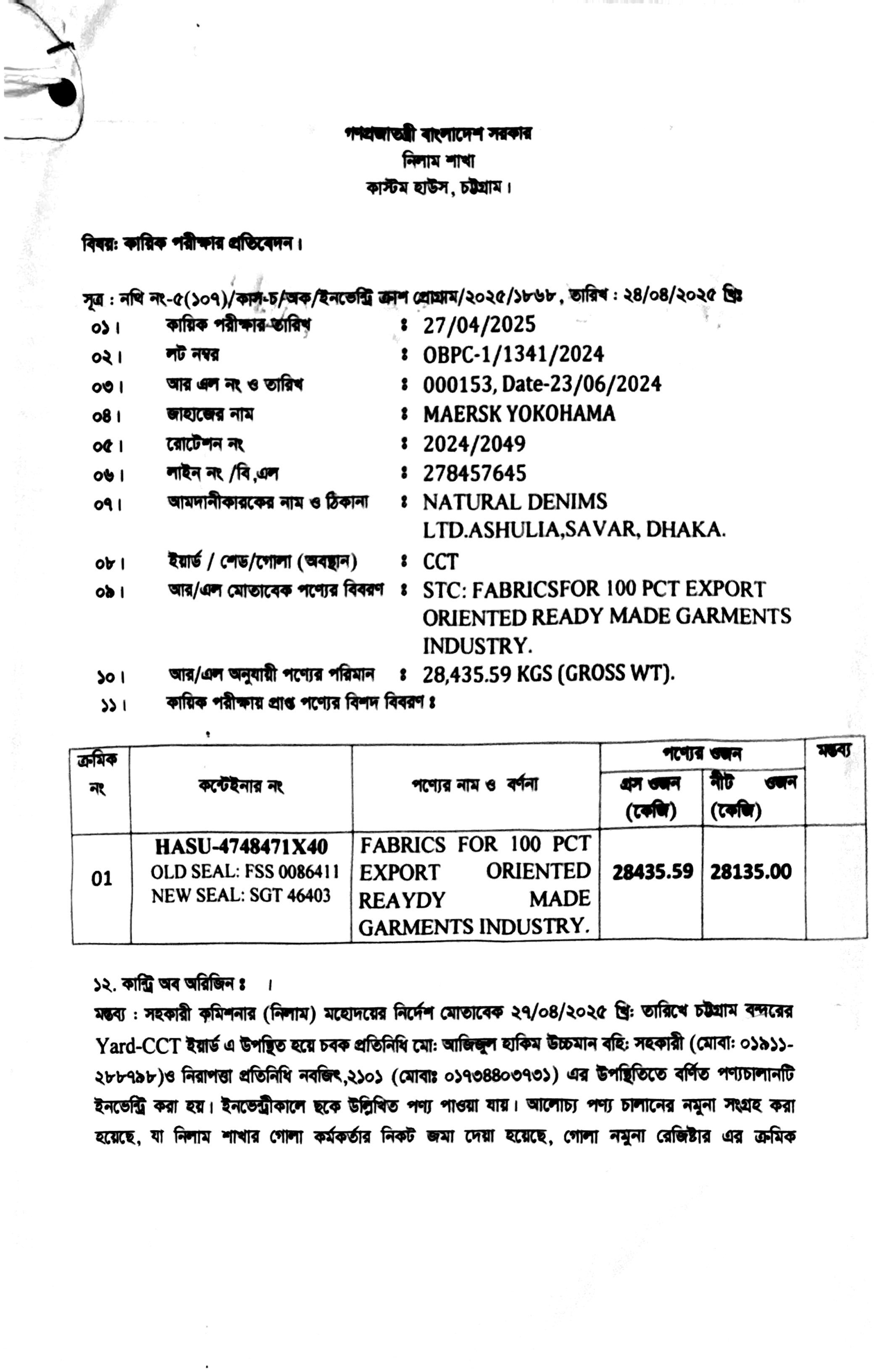 লটের শিরোনাম :Fabrics For 100 Pct. Export Oriented Ready-Made Garments Industry(Previous Bid: 0 TK)