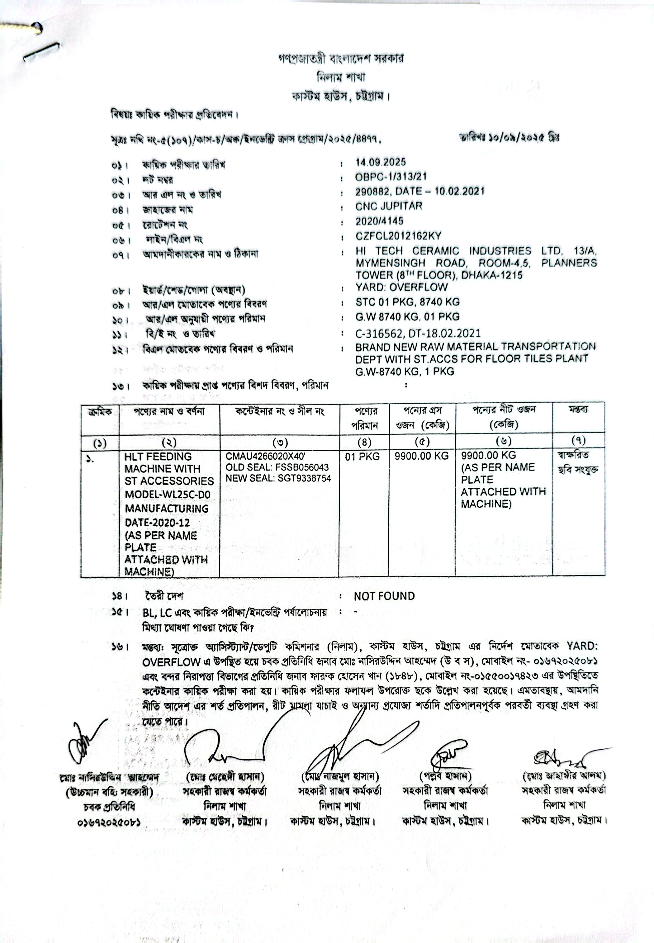 লটের শিরোনাম :HLT FEEDING MACHINE With ST Accessories Model-WL25C-DO Manufacturing Date-2020-12 (As Per Name Plate Attached with Machine) 9,900 Kgs(Previous Bid: 0 TK)