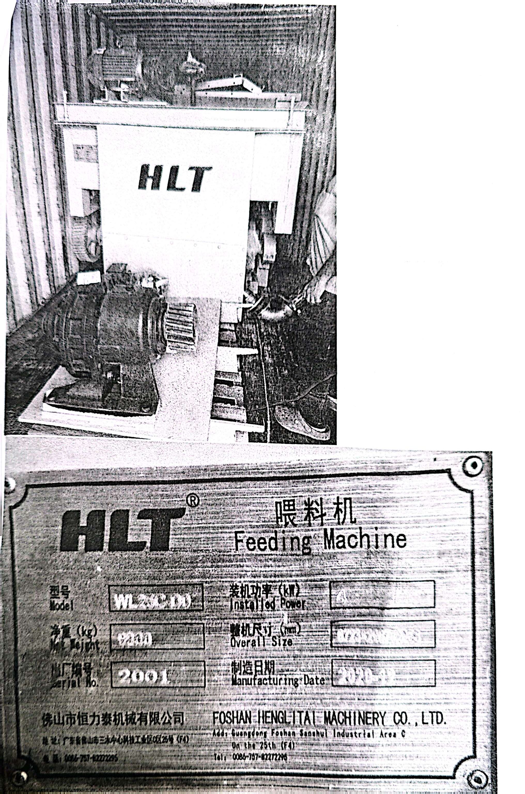 HLT FEEDING MACHINE With ST Accessories Model-WL25C-DO Manufacturing Date-2020-12 (As Per Name Plate Attached with Machine) 9,900 Kgs |