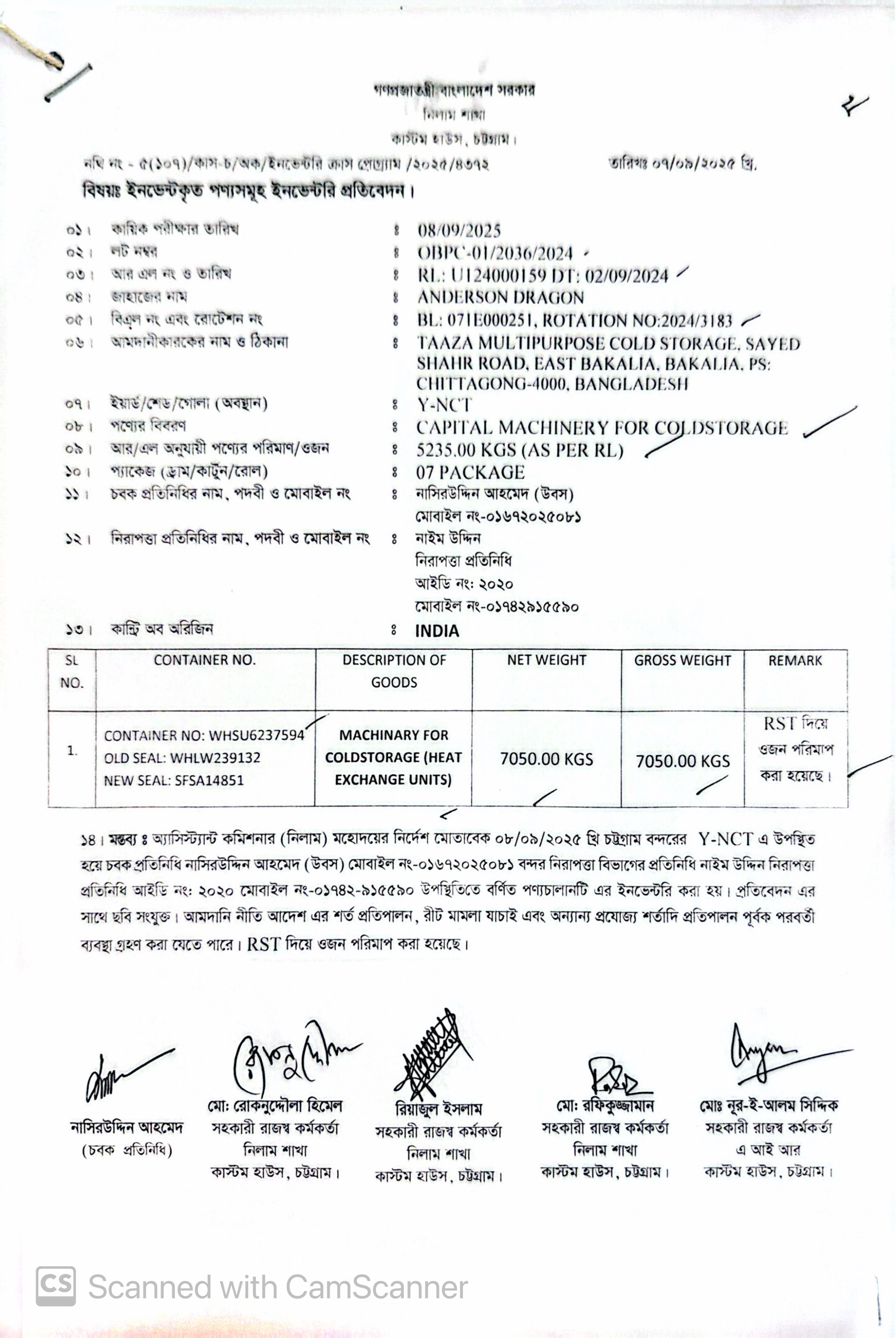 লটের শিরোনাম :Machinery For Coldstroage (Heat Exchange Units)(Previous Bid: 0 TK)
