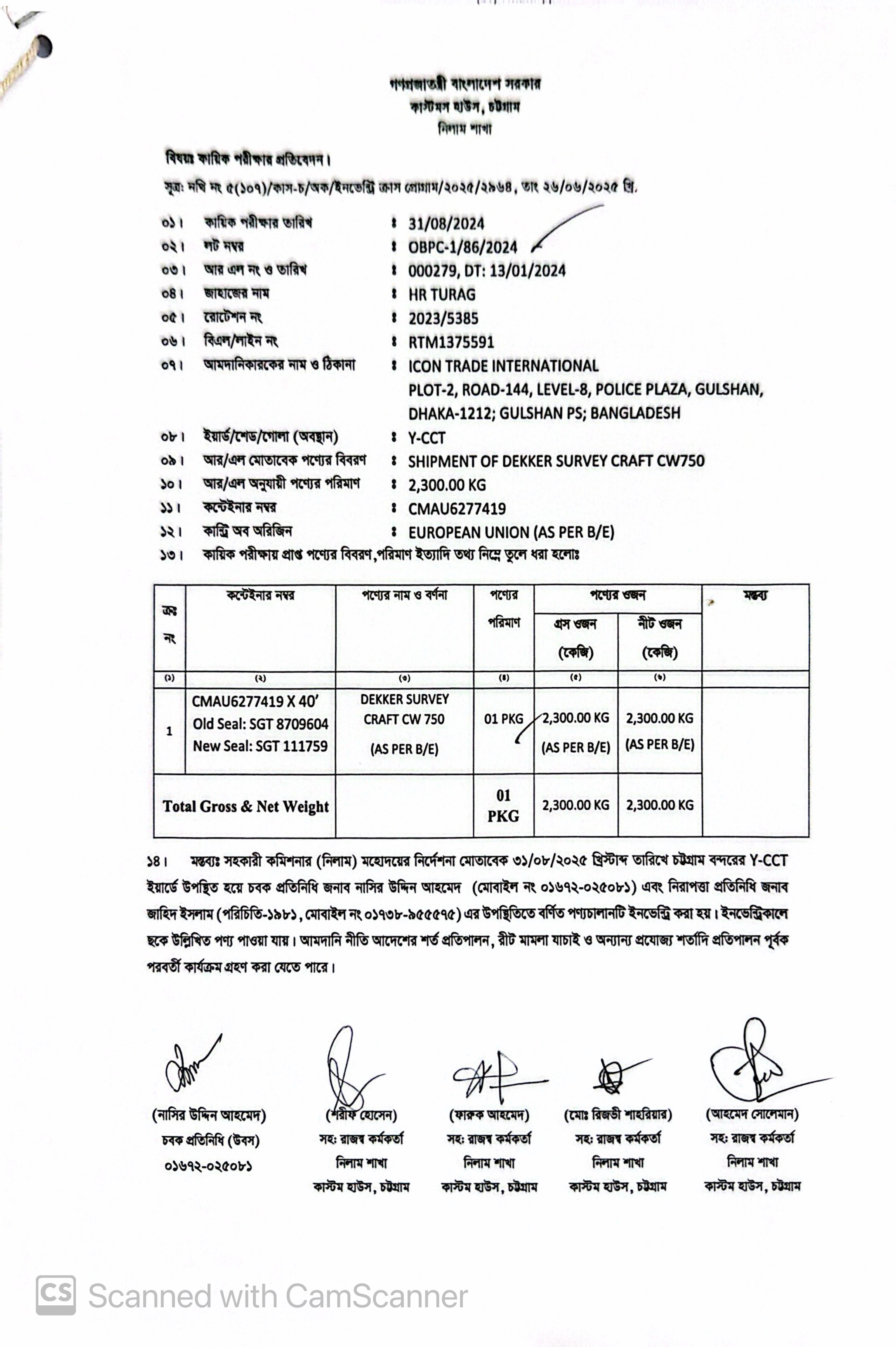 | কন্টেনার/জি আর নং |