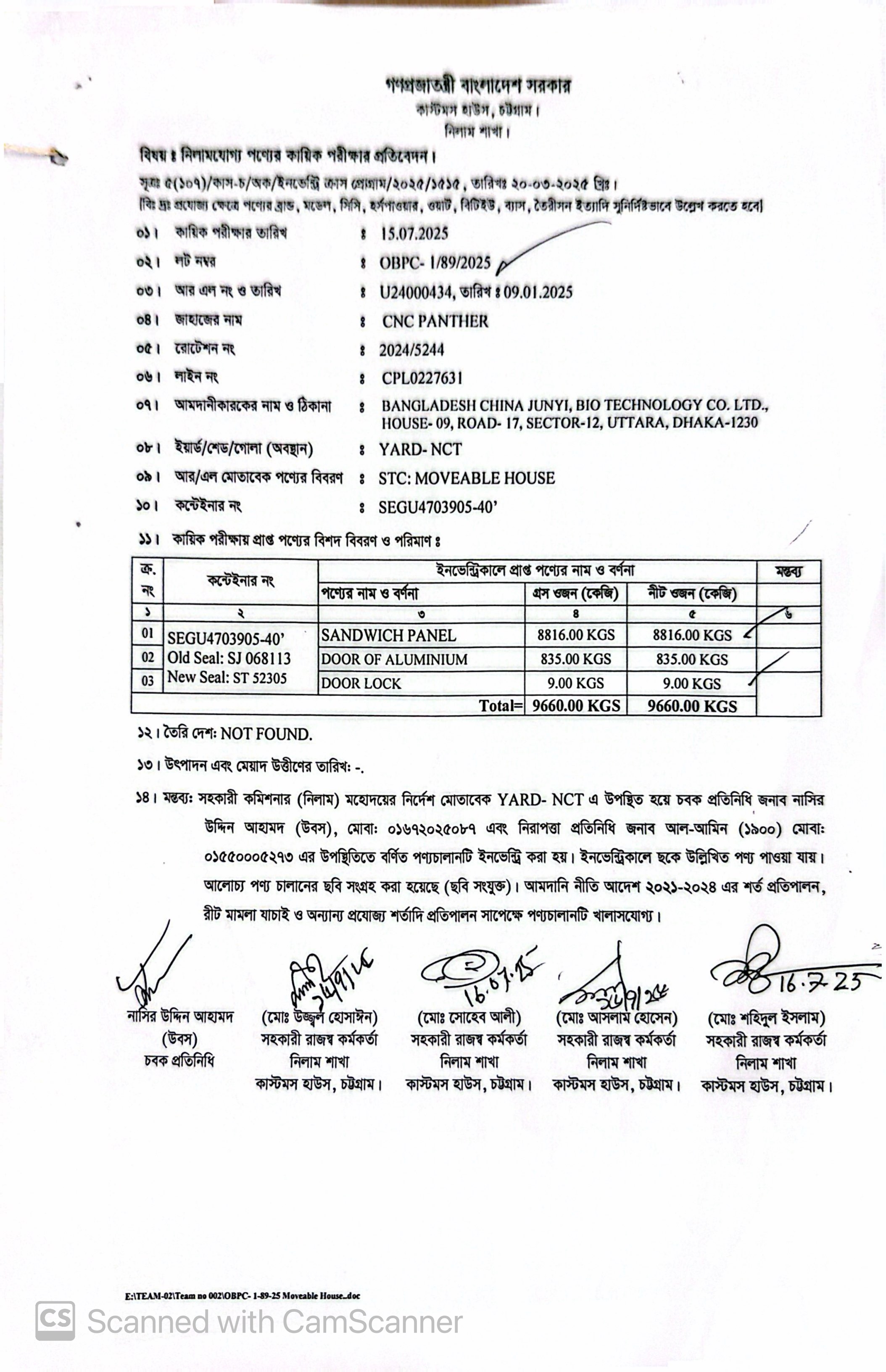 লটের শিরোনাম :DOOR LOCK DOOR OF ALUMINIUM SANDWICH PANEL(Previous Bid: 0 TK)