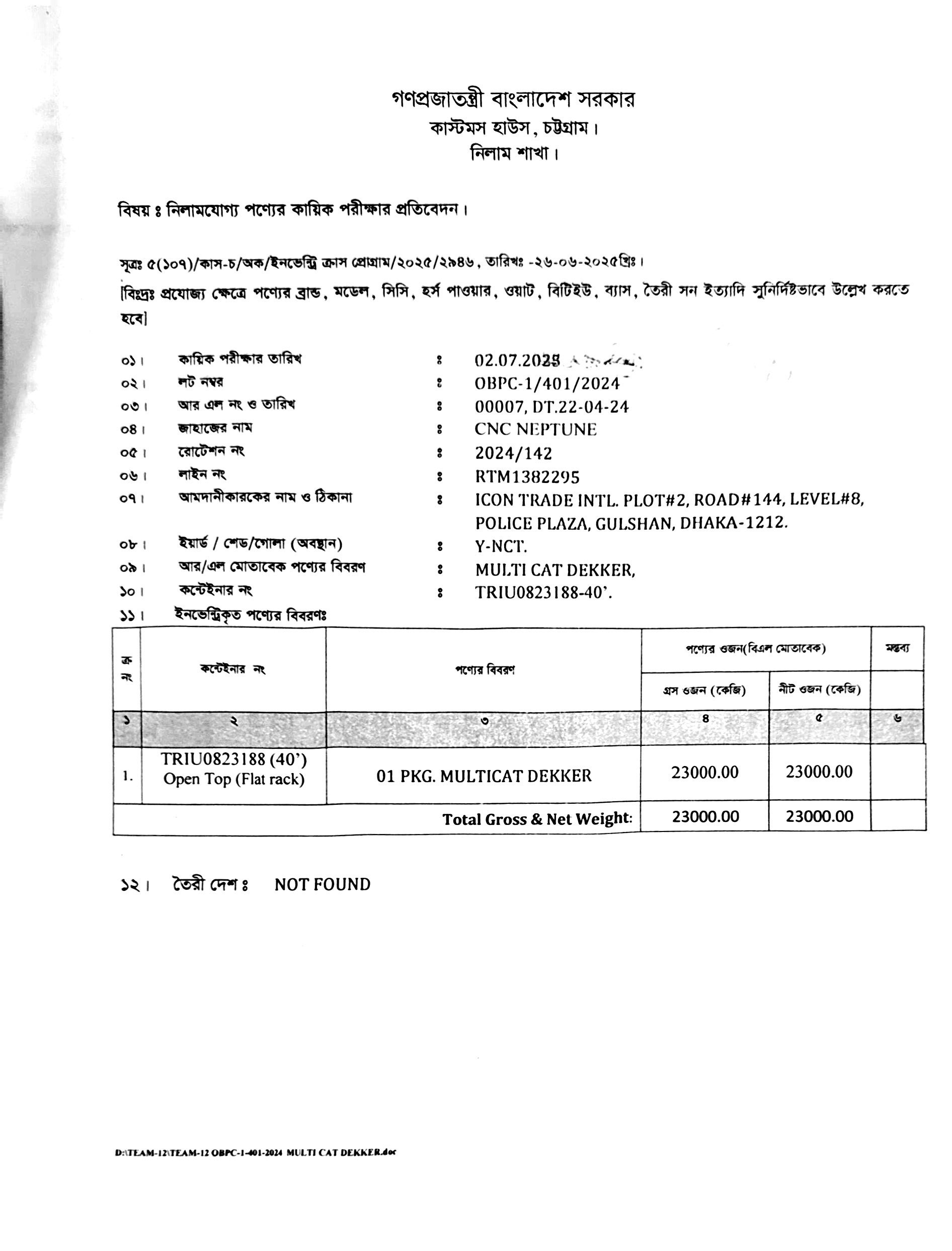 নিলামের পণ্য প্রদর্শনের তারিখ ০৮/০৩/২০২৬ থেকে ০২/০৪/২০২৬