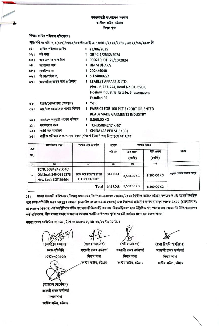 | কন্টেনার/জি আর নং |