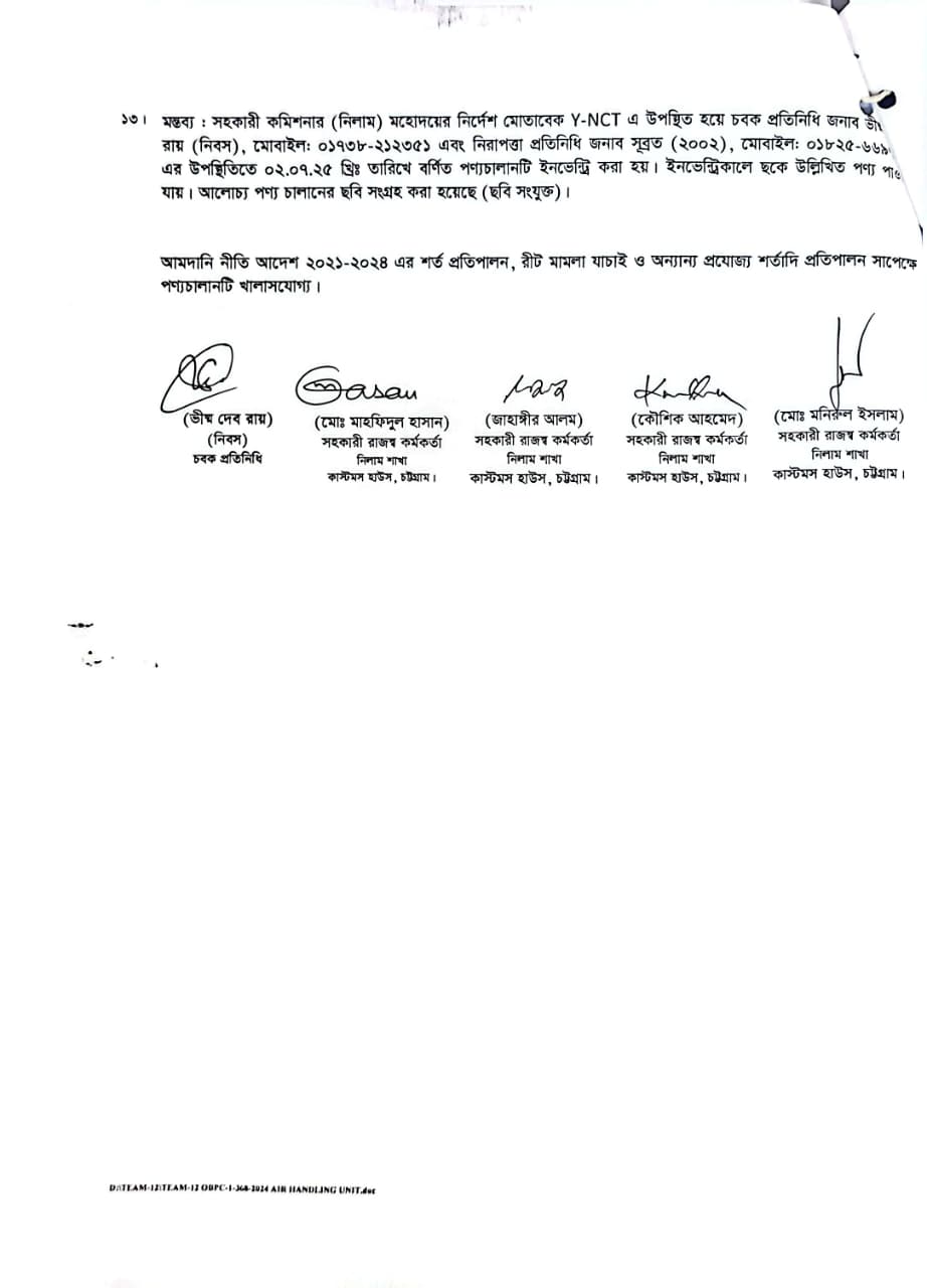লটের শিরোনাম :AIR Handling Unit With Installation Acc. (Cooling Capacity – 282 KW as per embossed Sticker) - 08 Pkgs(Previous Bid: 0 TK)
