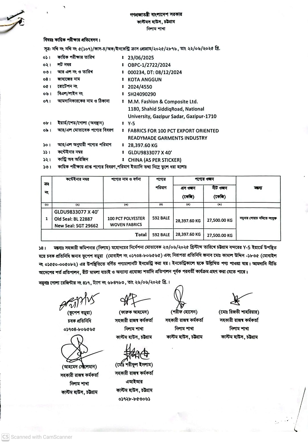 লটের শিরোনাম :100 PCT POLYESTER WOVEN FABRICS. C/O: CHINA.(Previous Bid: 0 TK)