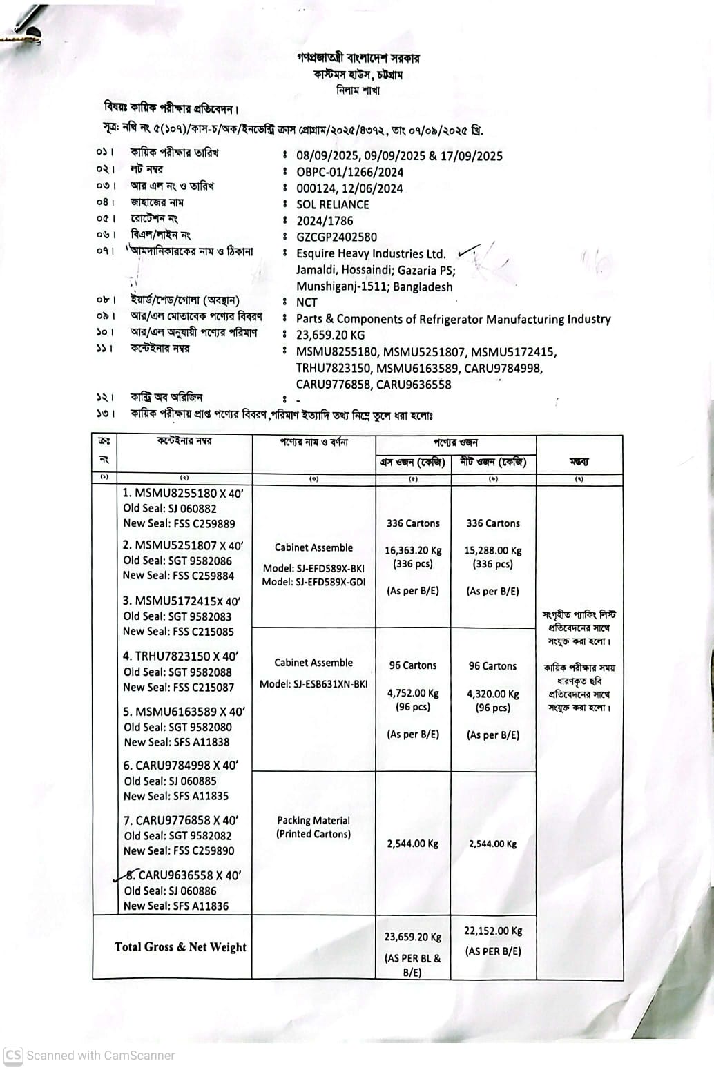 লটের শিরোনাম :CABINET ASSEMBLE MODEL : SJ-EFD589X-BKI MODEL : SJ-EFD589X-GDI MODEL : SJ-ESB631XN-BKI PACKING MATERIAL (PRINTED CARTONS) CO: CHINA (AS PER BE(Previous Bid: 0 TK)