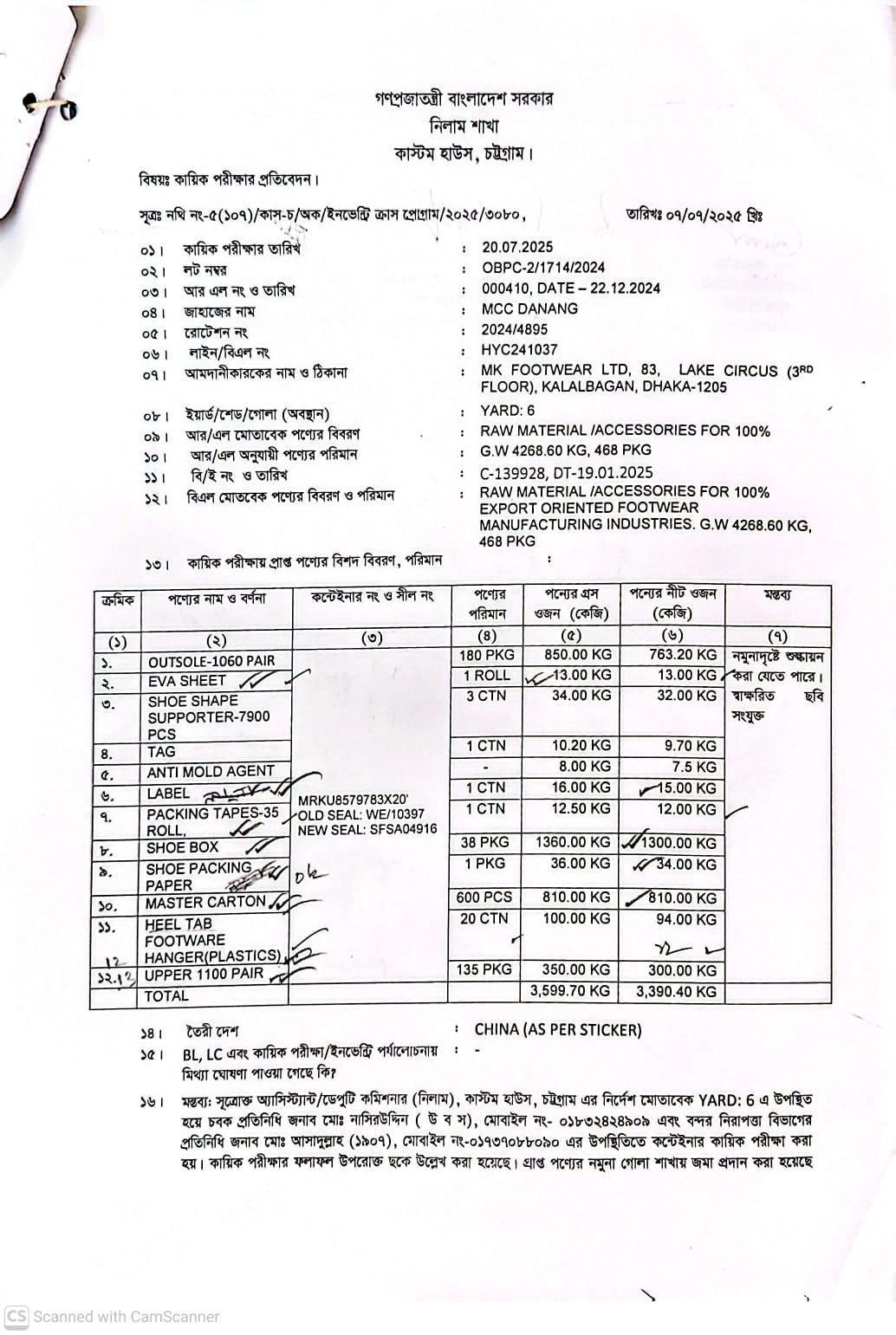 লটের শিরোনাম :1) OUT SOLE 2) EVA SHEET 3) SHOE SHAPE SUPPORTER 4) TAG 5) ANTI MOLD AGENT 6) LEVEL 7) PACKING TAPES 8) SHOE BOX 9) SHOE PACKING PAPER 10) MASTER CATON 11) HLL TAB FOOTWEAR HANGER (PLASTICS) 12) UPPER(Previous Bid: 0 TK)
