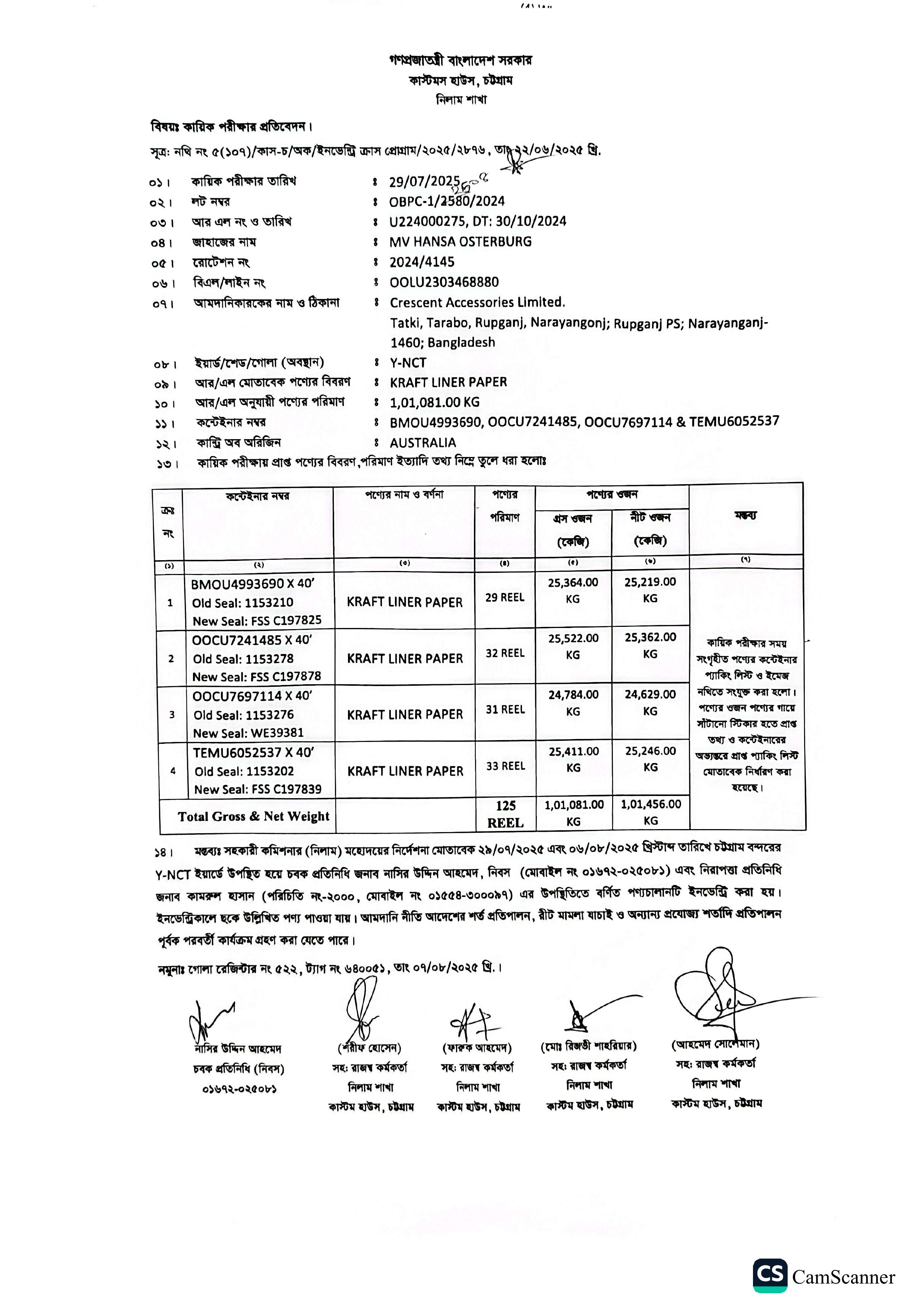 | কন্টেনার/জি আর নং |