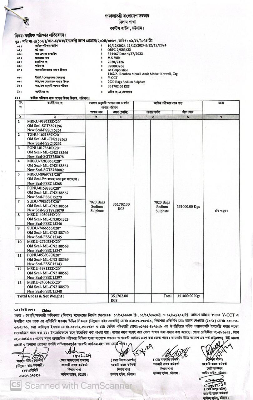 Terms & condition : আমদানি নীতি আদেশ এবং বিদ্যমান অন্যান্য আইন ও বিধি-বিধানের প্রযোজ্য সকল শর্ত পরিপালন এবং প্রযোজ্য ক্ষেত্রে রাসায়নিক পরীক্ষায় পণ্যের সঠিকতা ও ব্যবহার উপযোগিতা থাকা সাপেক্ষে খালাসকালে পণ্যের বর্ণনা এবং ওজন নিশ্চিত করে পণ্য ছাড়যোগ্য হবে। কোন লটভুক্ত পণ্যচালানে মেয়াদ উত্তীর্ণ/ধ্বসংযোগ্য পণ্য অন্তর্ভুক্ত থাকলে, উক্ত পণ্যচালানের ক্ষেত্রে মেয়াদ উত্তীর্ণ/ধ্বসংযোগ্য পণ্য ব্যতীত (প্রযোজ্য ক্ষেত্রে) কেবল মেয়াদযুক্ত/নিলামযোগ্য পণ্যসমূহ বিদ্যমান ও প্রযোজ্য আইন ও বিধি-বিধানের প্রযোজ্য সকল শর্ত পরিপালন সাপেক্ষে পণ্য ছাড়যোগ্য হবে। সার্ভার জটিলতা এড়ানোর জন্য আগ্রহী নিলাম ক্রেতাগণকে সরেজমিন পণ্য দেখে নিলামের নির্ধারিত তারিখ ও সময় শেষ হওয়ার পূর্বেই ই-নিলামে অংশগ্রহণ করার জন্য অনুরোধ করা যাচ্ছে। কোনরূপ কারণ দর্শানো ব্যতিরেকে কর্তৃপক্ষ যে কোন সময় ও পর্যায়ে যে কোন লট বা সকল লটের নিলাম আংশিক বা সম্পূর্ণ স্থগিত বা বাতিলের অধিকার সংরক্ষণ করেন।