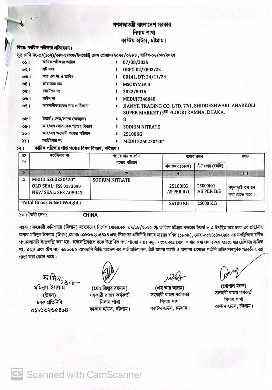 লটের শিরোনাম :Sodium Nitrate(Previous Bid: 0 TK)